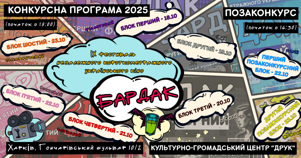 📍 Де? ДРУК, Гончарівській бульвар 10/2 🗓️ Коли? 18-23 жовтня, початок конкурсних показів щодня о 19:00.